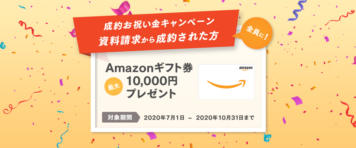 対象期間中に当社にてご成約の確認出来た方全員にAmazonギフト券最大10,000円分をプレゼント