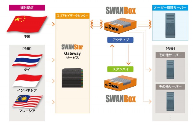 今まで使用してきたハードウェアの保守期間満了のためSWANStorを新たなサーバーに載せ替える検討を行っていましたが、2016年の夏に送られてきたエリアビイのメールマガジンでSWANBoxの存在を知りました。 それによるとSWANBoxとは、SWANStorが予めインストールされたアプライアンスのマイクロサーバーとのことで、早速エリアビイに問い合わせを行い説明を受けた結果、大変興味を持ちました。 サーバー用のハードウェアを別途用意する場合に比べて低コストで構築でき、手軽に導入できる点が決め手となり、冗長構成にて導入する事を即断しました。 今回はこれで中国との間にセキュアな通信インフラを構築できました。今後は同じような仕組みをタイ、インドネシア、マレーシア等で導入し、システムも現在使用しているシステムだけでなく、さまざまなシステム分野に広げて行く事を計画しています。 また今後はセキュリティ強化のために用意されている、さまざまなオプション機能も採用を検討したいと思っています。